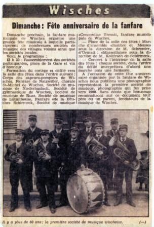 La société CONCORDIA de WISCHES a été rebaptisée SOCIÉTÉ DE MUSIQUE MUNICIPALE.