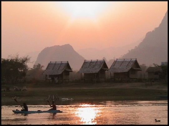 Sur le fleuve bien sur, en pirogue, et voilà le départ...