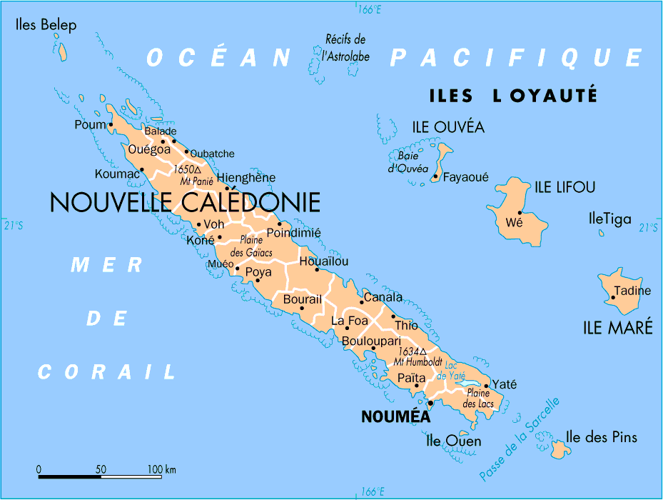 elle a une superficie de 18.575 km², fait partie de l'ensemble mélanésien. L'archipel comprend la Grande-Terre, deux fois grande comme la Corse (400 km de long sur 50 km de large), les quatre îles Loyauté (Ouvéa, Lifou, Tiga et Maré), l'archipel des îles Belep, l'île des Pins et quelques îlots lointains. La zone économique exclusive couvre 1,4 millions de km² (soit la moitié de la superficie de la mer Méditerranée).