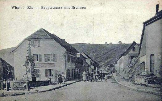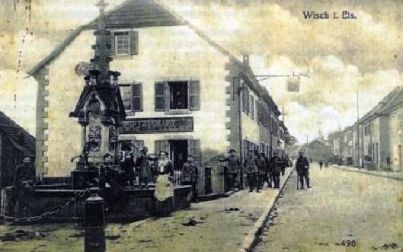 "... en 1918, la fontaine avait subit quelques dégâts, c'est le Vieux Waltzer, considéré un peu simplet par les Wischois, qui se chargea de la rénovation avec beaucoup de dextérité, ce qui étonna plus d'un.