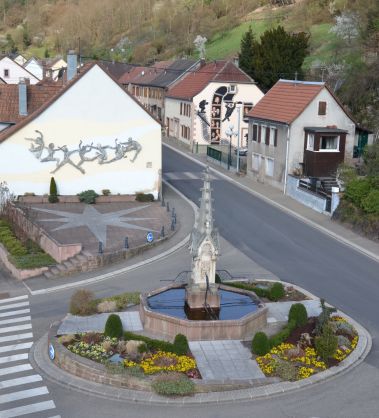 Les villages de la Vallée de la Bruche sont parsemés de nombreuses fontaines à deux bacs servant à parer les risques d’incendies, à approvisionner les habitants en eau courante, tout en faisant office d’abreuvoir et de lavoir. Rustiques dans les villages de montagne, les fontaines, dont la plupart sont datées du XIXe siècle, sont parfois des chefs-d’oeuvre de sculptures comme à Wisches-Hersbach.