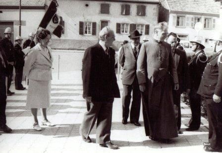 à droite, le curé de Ueberrach qui venait régulièrement à Wisches chez Mademoiselle Rosalie Zimmermann, rue des Ecoles; cette dernière, contrôleur au PTT, lui avait financé ses études