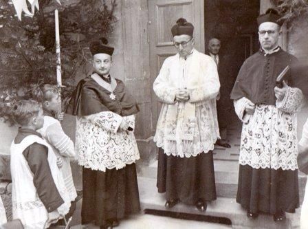 >>au centre, "le vieux curé de Russ", l'abbé Kern retraité à Russ et qui remplaçait le curé Strohmeyer pour le grand bonheur des servants de messe, car il n'exerçait pas, lui, une vigilance de tout instant sur la bouteille de vin de messe