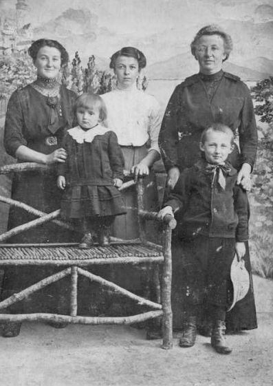Sur le trottoir, devant sa maison, Marie Antoinette GANIER (dite « la Manette ») âgée de 58 ans s'active à casser du bois à la hache sur un fût de sapin, afin d'en faire provision pour l'hiver. A quelques pas d'elle, son père Placide GANIER, âgée de 83 ans, se repose sur un banc, sa canne posée à côté de lui ;