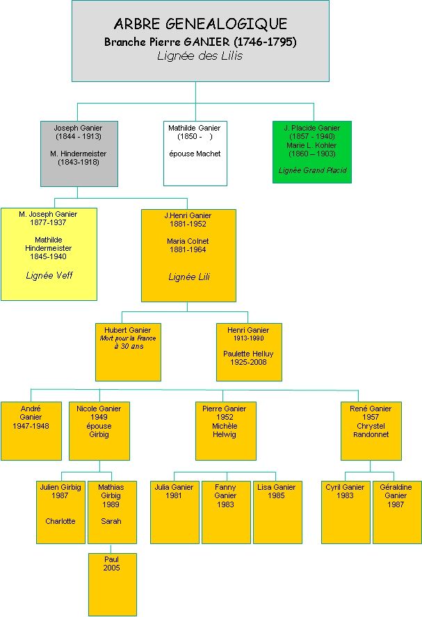 le fils cadet de Joseph Ganier. Au côté de son frère aîné, il apprend le métier de boulanger au sein de l'entreprise familiale. Après son mariage avec Maria Colnet, il ouvre sa propre boulangerie dans la Grand'Rue, presque en face de l'église et entre en concurrence avec son frère aîné. Aujourd'hui, la boulangerie n'existe plus depuis 1952, décès de Joseph Henri. La maison est restée propriété de la famille.
