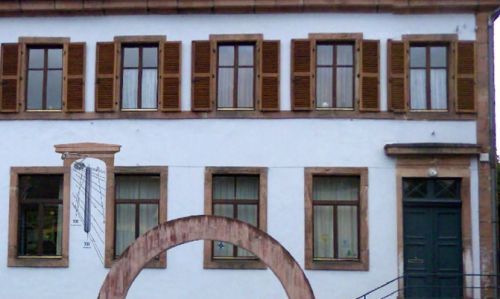 Le réglage de celle-ci devait être facilité par le fait que ces deux horloges sont en communication visuelle l'une avec l'autre. D'après René R.J. Rohr, la méridienne de Wisches est très probablement la seule de la vallée de la Bruche encore en place sur un édifice non religieux.