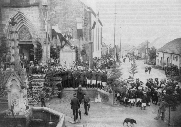 A travers l'inépuisable Courrier de la Bruche, on peut aisément suivre le rythme de l'installation des différents monuments aux morts : la cérémonie avait lieu le dimanche, avant ou après l'office, avec dépôt de gerbe, discours et participation des sociétés locales.