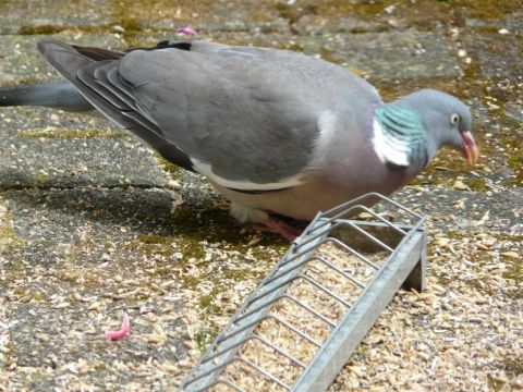 Un pigeon ramier a trouvé un lieu de nourrissage...