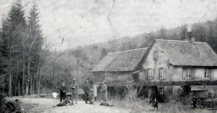 C’est dans cet endroit calme et limpide que fonctionnait encore au début de notre siècle, la scierie du Pâquis, berceau de mes ancêtres. C’est en ce lieu retiré qu’en 1889 et jusqu’en 1920, date à laquelle elle fut détruite par un incendie, mon arrière-grand-père, Julien Holveck vint s’installer comme sagard avec son épouse Marie Anne.
