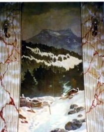 « Voulant laisser à sa ville un souvenir personnel, il fit exécuter, à ses frais, par Ganier Tanconville, neuf panneaux muraux représentant divers sites de la montagne ». Il en subsistent, peut-être, six, signés Ganier-Tanconville.