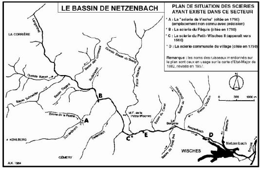 Après cette énumération, tournons à présent nos regards vers le fond de ces vallées pour aborder ensemble l'étude des scieries. Cinq établissements dont quatre sur le cours du Netzenbach montrent l'importance qu'avait ce ruisseau. Nous allons les passer en revue d'amont en aval.
